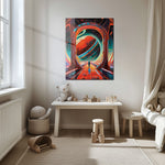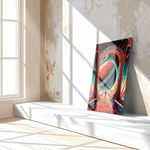 Transport your walls to another world with our Astronaut Gateway to Saturn Glass Wall Art. This high-resolution UV print features a lone space explorer standing before a massive planet through an arched sci-fi portal, rendered in vivid red, teal, and orange tones. A visual journey into the cosmos, this piece sparks imagination and adventure.