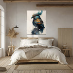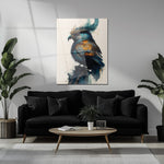 Let imagination take flight with our Fantasy Crowned Bird Glass Wall Art. This high-resolution UV print features a majestic bird with iridescent blue, gold, and orange plumage, perched confidently with an artistic crown of feathers. The watercolor drip effect and neutral background create a striking blend of fantasy, wildlife, and abstract beauty—perfect for creative interiors or nature-inspired decor.