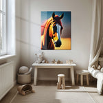 Celebrate strength, elegance, and freedom with our Majestic Horse Portrait Glass Wall Art. This high-resolution UV print features a powerful chestnut horse with a flowing mane and striking facial markings, set against a softly blurred desert-inspired background. A timeless symbol of grace and vitality, perfect for modern interiors, rustic homes, or equestrian lovers.