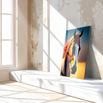 Printed on durable tempered glass with a sleek, frameless finish, this artwork brings motion and spirit into any living or working space.