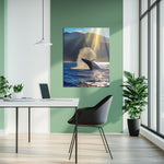 Majestic Whale Breach UV Glass Wall Art – Ocean Wildlife Scene at Sunrise - KAFCD093