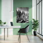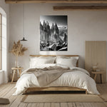 Transform your space with the surreal beauty of our Monochrome Crystal Landscape Glass Wall Art. This striking piece features towering geometric rock formations in a frozen mountain valley, rendered in dramatic black and white tones. The UV print on tempered glass adds depth and elegance, perfect for minimal or futuristic decor styles.