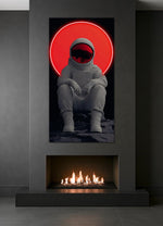 Neon Astronaut Red Halo Poster | Space Wall Art Plexiglass UV Print | Cosmic Decor for Men’s Room
