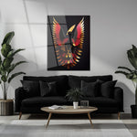 Phoenix Rising Glass Wall Art – Majestic Red & Gold Mythical Bird Design-KAFCD005