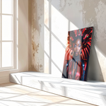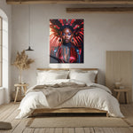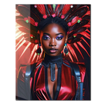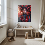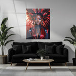 Celebrate strength, beauty, and cultural brilliance with our Regal Afro-Futuristic Woman Glass Wall Art. This high-resolution UV print features a stunning woman in a radiant red outfit and a majestic feathered headdress, blending traditional symbolism with futuristic fashion. Her confident gaze and vibrant styling make this piece a true centerpiece for modern, eclectic, or cultural spaces.