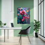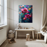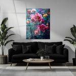 Add a burst of color and elegance to your walls with our Romantic Floral Bloom UV Glass Wall Art. Featuring a lush arrangement of blooming peonies and roses in vivid pinks, purples, oranges, and yellows, this design is set against rich teal-green foliage that brings out each petal's depth and detail. The high-resolution floral print feels both dreamy and modern, creating a stunning centerpiece for bedrooms, living spaces, or creative studios.