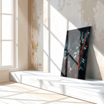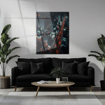Printed on premium tempered glass with a frameless glossy finish, this bold artwork adds cinematic energy and depth to any space.